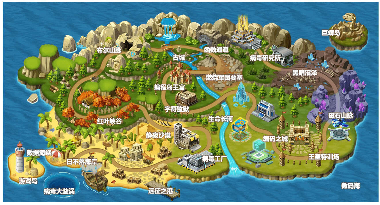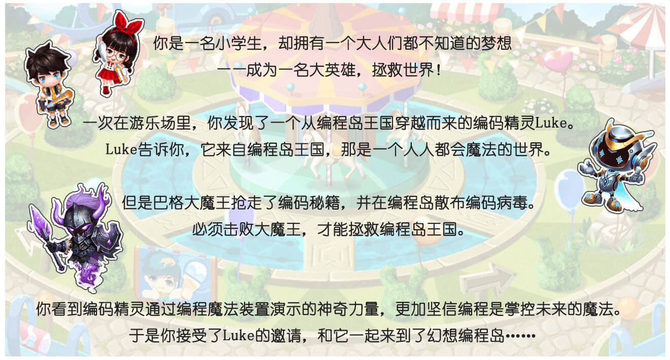 带领主角进入了编程岛王国,一起开启了击败巴格大魔王的冒险之旅。